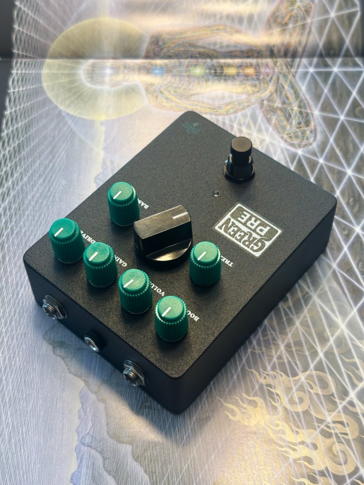 A recreation of the dunwich 120 circuit which is a mosfet based green matamp gt120 in pedal form. This one has a rotary knob to select between different output capacitors giving you extra options for eq. This thing sounds amazing and I keep one on my personal doom board as the main gain/overdrive sound. Very versatile. If you’ve ever dreamed of having the green amp sound but can’t afford a 3,000 dollar amp (like me) this is the one for you!